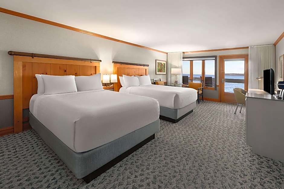 Comfort meets convenience in this non-smoking Water View Room with 2 Queen beds, featuring pillow-top mattress and sweeping ocean views. Outfitted with free high-speed WiFi and a flat-screen HDTV with cable, this quiet, inviting retreat offers everything you need for an ideal stay. You’ll find complimentary bath products, a hair dryer, and bathrobe along with a mini-refrigerator, coffee/tea maker, desk with chair, and safe. Ironing amenities are available upon request.